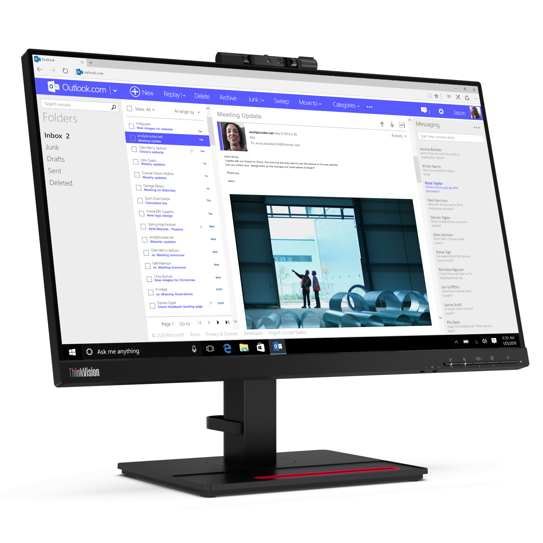 Lenovo ThinkVision T24v-20 z kamerą i głośnikami